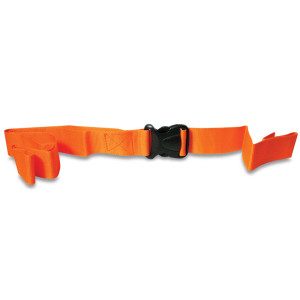 The Spinal Board Strap is an orange adjustable single strap that can be used with the spinal board to secure patients in place.